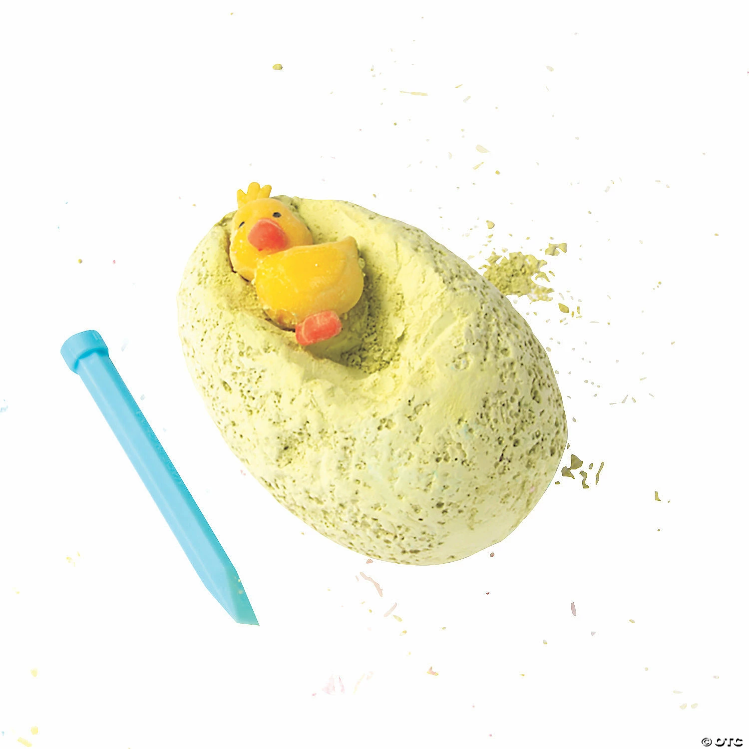 These excavation Easter eggs are a wonderful addition to Easter baskets, Easter favor bags or to explore during at-home Easter activities! Simply soak the clay egg in water and then carefully chisel away the shell to excavate the Easter toy inside! Includes 12 plastic chisel tools and 12 clay eggs. 3″