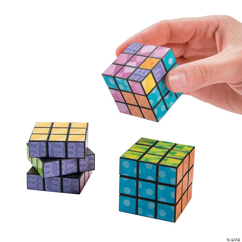 Take turns twisting and testing your noggin! A fun and classic kids’ game, these magic cubes come designed in bright patterns little ones will love. Mix up the colors, then solve the puzzle to put each shade back together on one side. If you love puzzles and mental challenges, then these cubes are for you. Plus, their mini size makes them the perfect fit for party favor bags, Christmas stocking stuffers and everyday giveaways. Plastic. 1 1/2″ © OTC