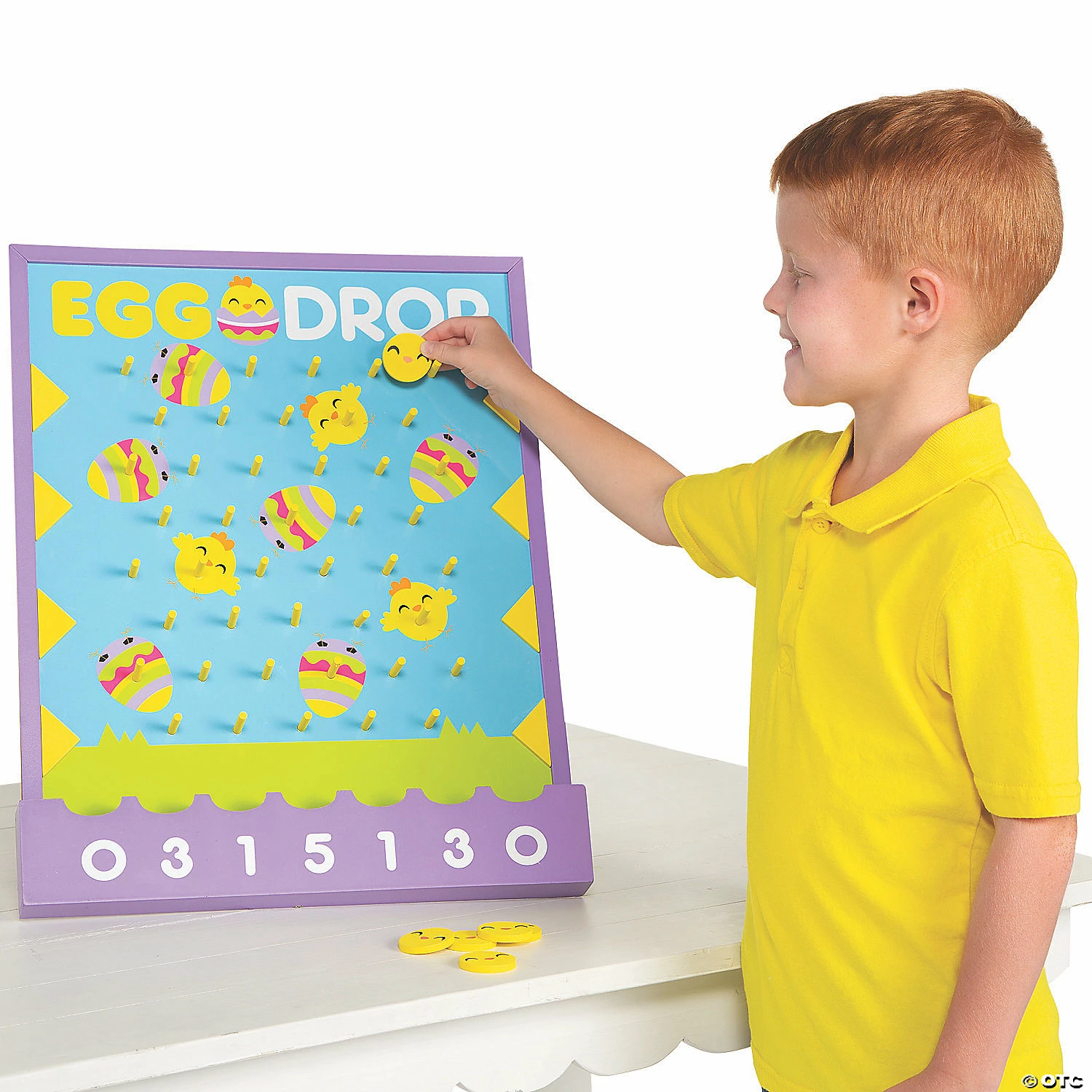 An egg-cellent activity for a kidsโ egg hunt event, this disc drop game features โEgg Drop,โ chicks and colorful Easter eggs. Set up the Easter game with other carnival games or Easter activities for kids to enjoy before or after the hunt. Little ones will have a blast dropping the discs down the board to try to win game prizes like Easter toys and candy (found here on our site!). Wood. Board, 15 3/4″ x 20 1/4″; six discs, 1 1/2″ diam.; support dowel, 19 3/4″. Simple assembly required. ยฉ OTC