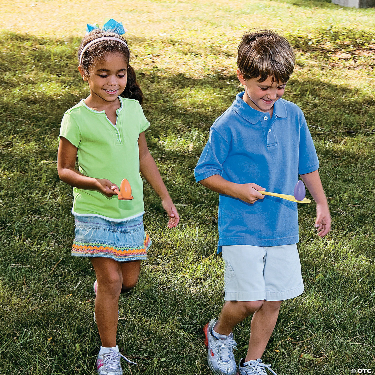 Our Egg-Citing Egg Spoon Game Set is egg-ceptionally fun! The race is on! It’s a great outdoor toy for kids. Balance the egg on the spoon and see how far you can run! Kids will love participating in this activity after the Easter egg hunt! It’s a fun and unique kids’ toy, and great for adults too! Include this spoon game at your next luau or 4th of July party. Wood. Includes six 12″ spoons and six 2 1/2″ eggs.