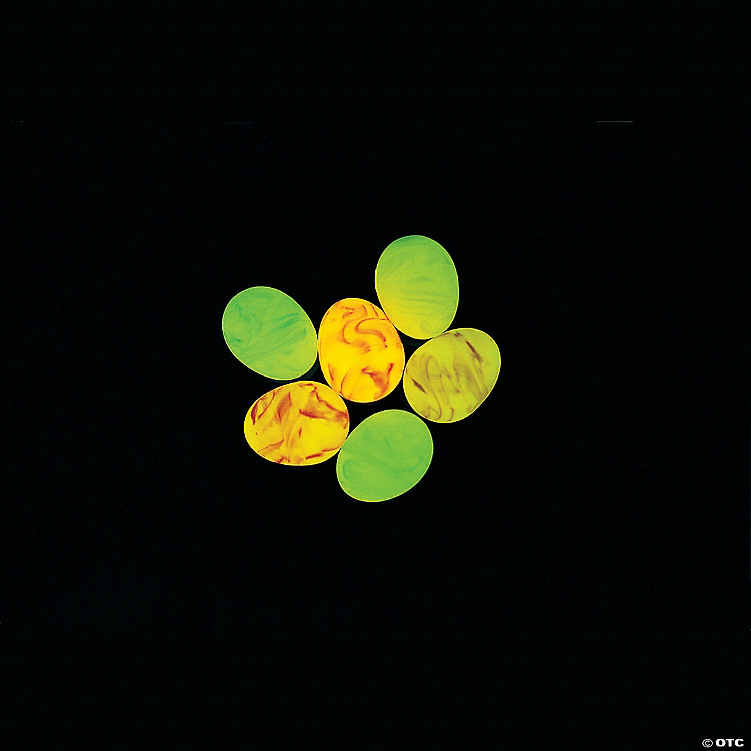 Fun to play with in the dark! These egg-shaped rubber balls have bright swirling colors and they glow-in-the-dark! Theyβre perfect for an after dark Easter egg hunt! 1 3/4″ (44mm) Item needs to be charged under light. Expose item to direct light to activate glow.